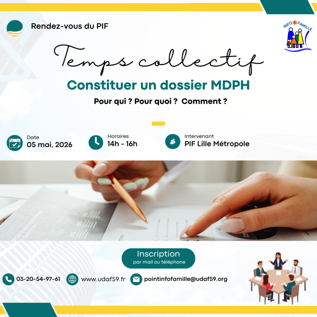 Renseignements et inscriptions au 03.20.54.97.61 ou par mail : pointinfofamille@udaf59.org